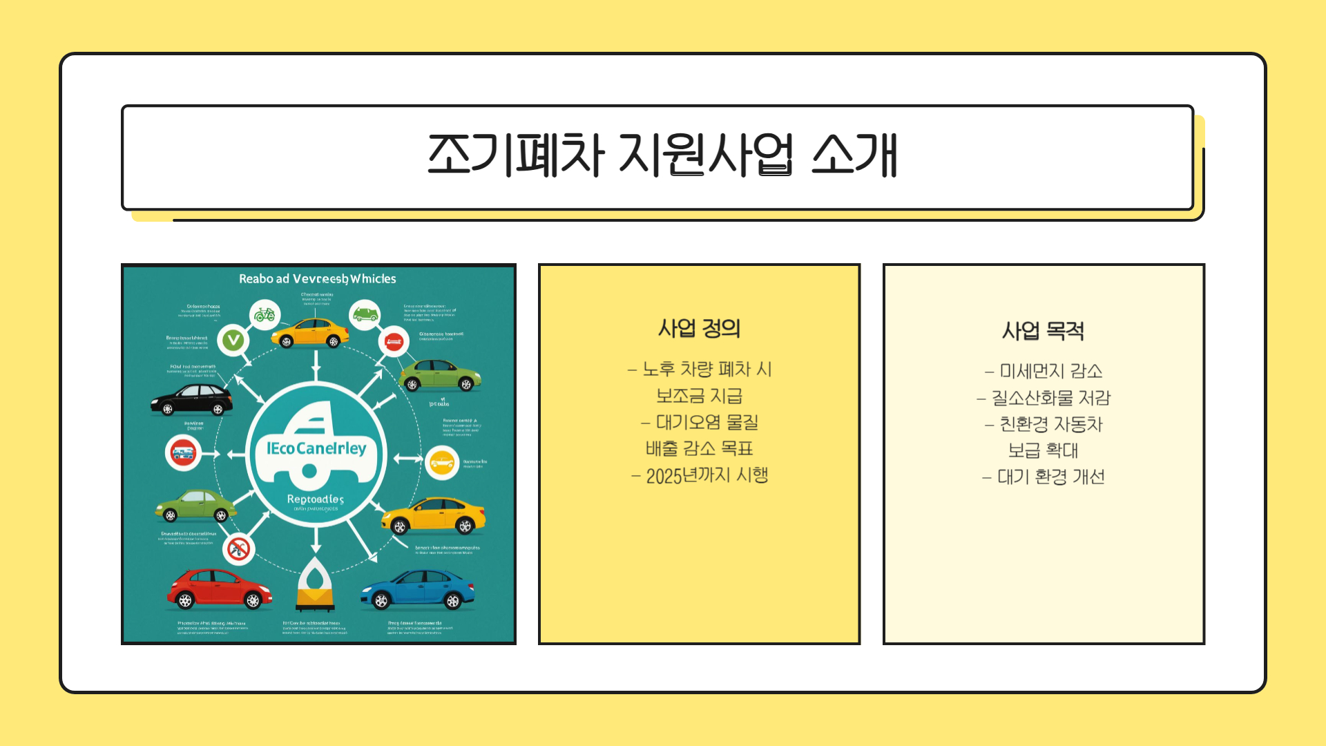 - 보조금 지원을 받고 노후 차량을 조기에 폐차할 수 있다.
