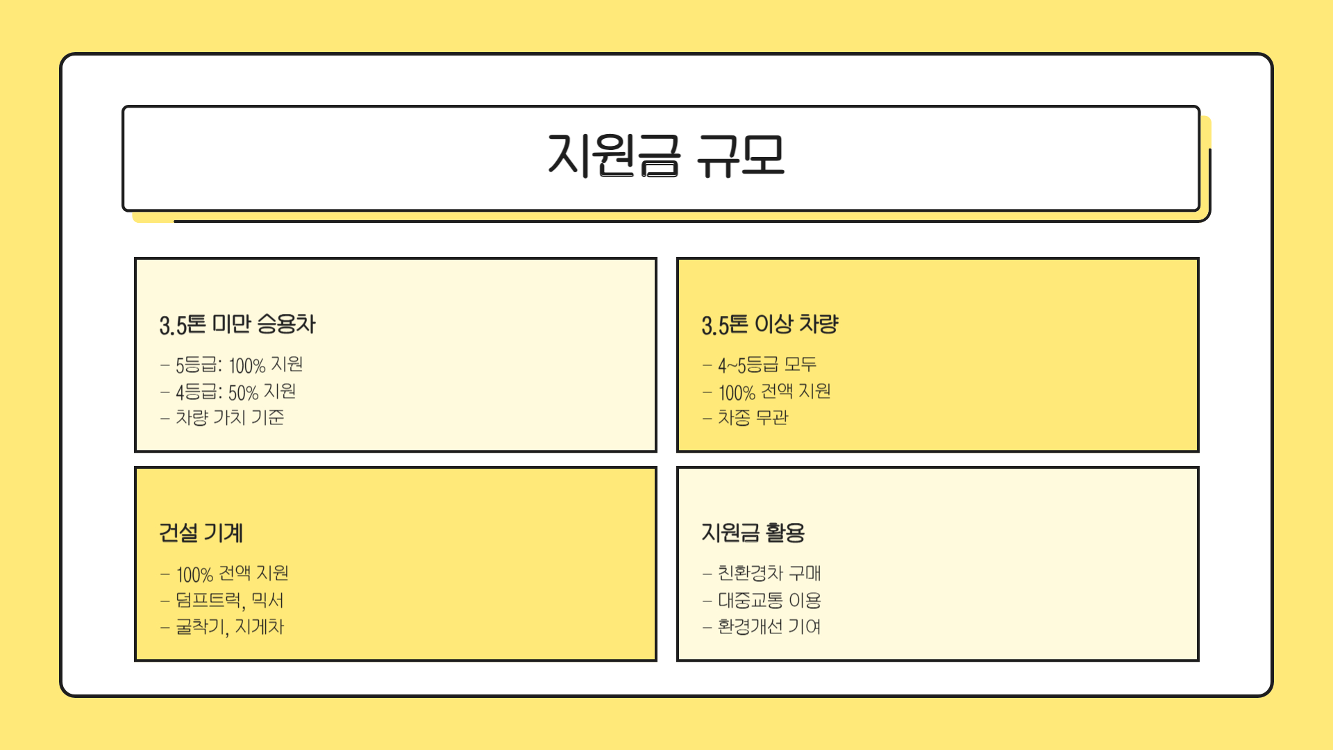 - 기타 차량 (3.5톤 이상 포함): 4~5등급 모두 100% 지원